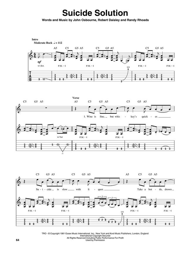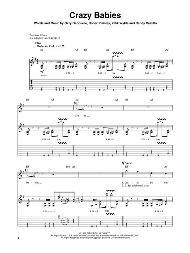 Partitions pour chant et guitare (tablatures et symboles d'accords) de 8 chansons d'Ozzy Osbourne, célèbre chanteur du groupe d'Heavy Metal, Black Sabbath.
