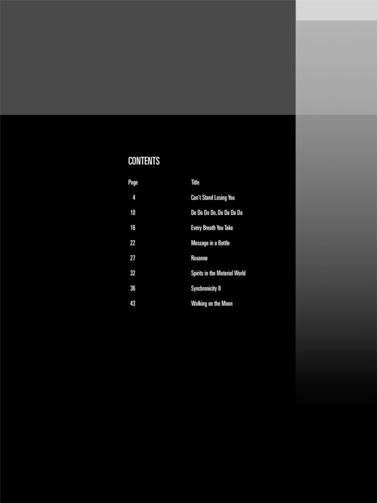 8 chansons: Can't Stand Losing You - De Do Do Do, De Da Da Da - Every Breath You Take - Message dans une bouteille d 'alcool - - Roxanne dans le Material World - - Synchronicity II marche sur la Lune.