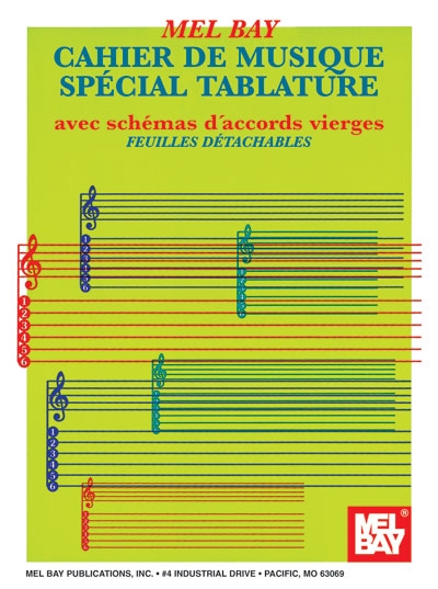 Un livre manuscrit conçu spécifiquement pour guitare, mandoline, banjo ou toute notation onglet, avec 40 pages de 5 systèmes stave double spécial pour l'écriture de la notation et tablature. Ce livre avec pages perforés est imprimé à l'encre noire sur régulière-poids, livre blanc. Comprend 2 pages de diagrammes d'accords, 3 pages de grilles de corde vierge, avec instructions sur comment lire la tablature et des renseignements de base sur le major et minor échelles. 8,75 x 11,75.