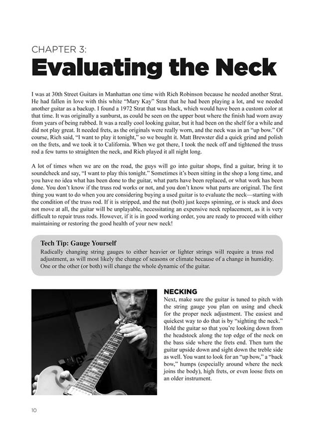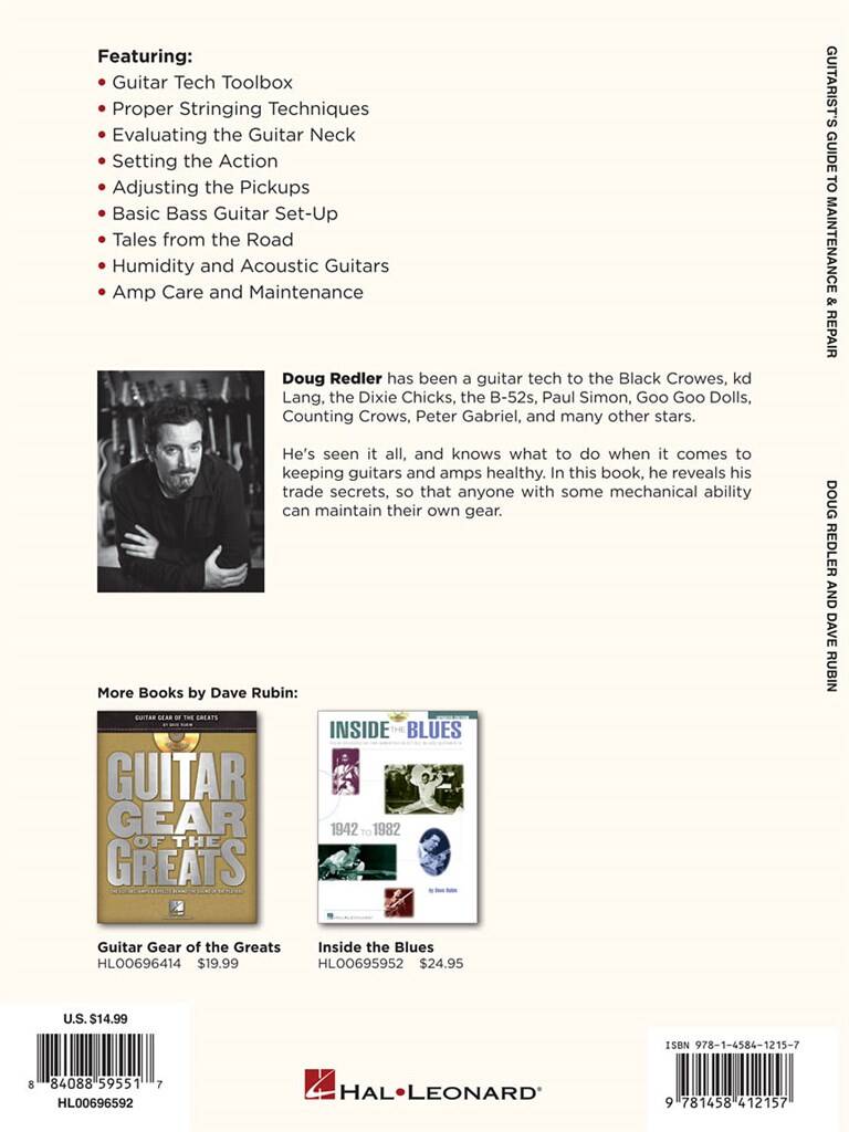 Préface de Rich Robinson de The Black Crowes. Doug Redler a été technicien guitariste pour les Black Crowes, k.d. lang, les Dixie Chicks, les B-52s, Paul Simon, les Goo Goo Dolls, les Counting Crows, Peter Gabriel, et bien d’autres stars. Il a tout vu, et sait quoi faire pour garder guitares et amplis en bonne santé. Dans ce livre, il révèle ses secrets commerciaux afin que toute personne ayant un certain talent mécanique puisse entretenir son propre équipement. Coécrit avec l’historien de la guitare Dave Rubin de HalLeonard, ce livre aborde : la boîte à outils technique de guitare, les techniques appropriées de cordage, l’évaluation du manche, le réglage de l’action, l’ajustement des micros, la configuration de base de la basse, les histoires de la route, l’humidité et les guitares acoustiques, l’entretien et l’entretien des amplis, et bien plus encore !