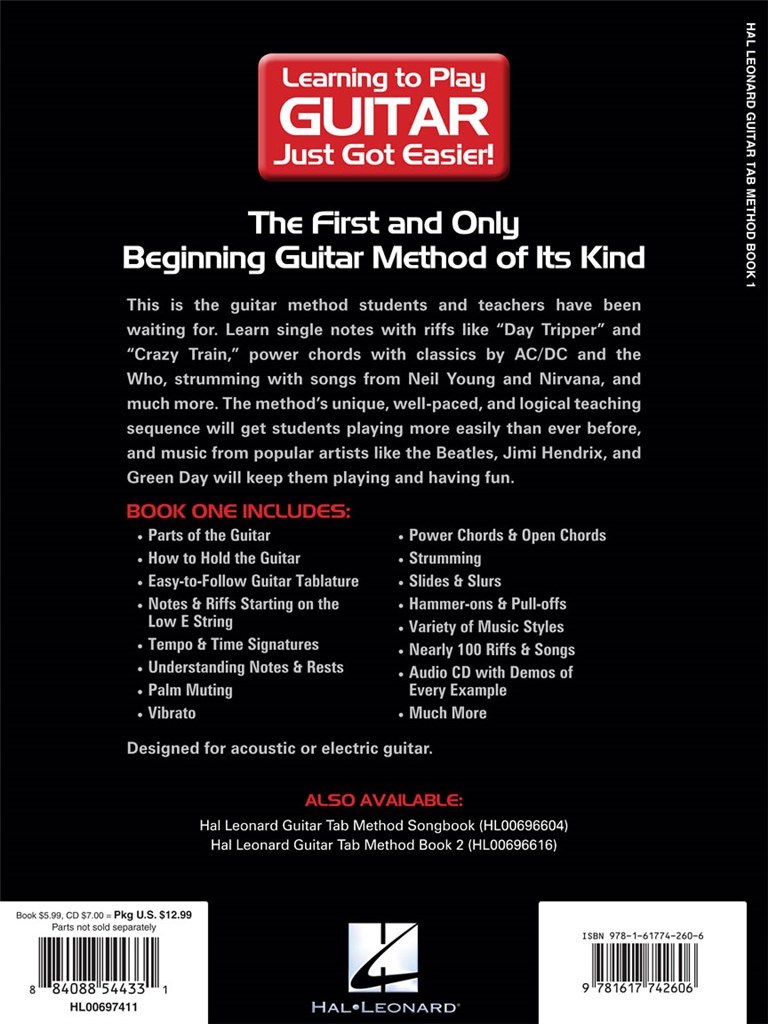 La méthode Hal Leonard Guitar Tab sont les élèves et les enseignants méthode de guitare ont été d'attendre. Apprenez des notes simples avec des riffs comme Day Tripper et Crazy Train, power chords avec des classiques d'AC / DC et l'OMS, grattant avec des chansons de Neil Young et Nirvana, et bien plus encore.