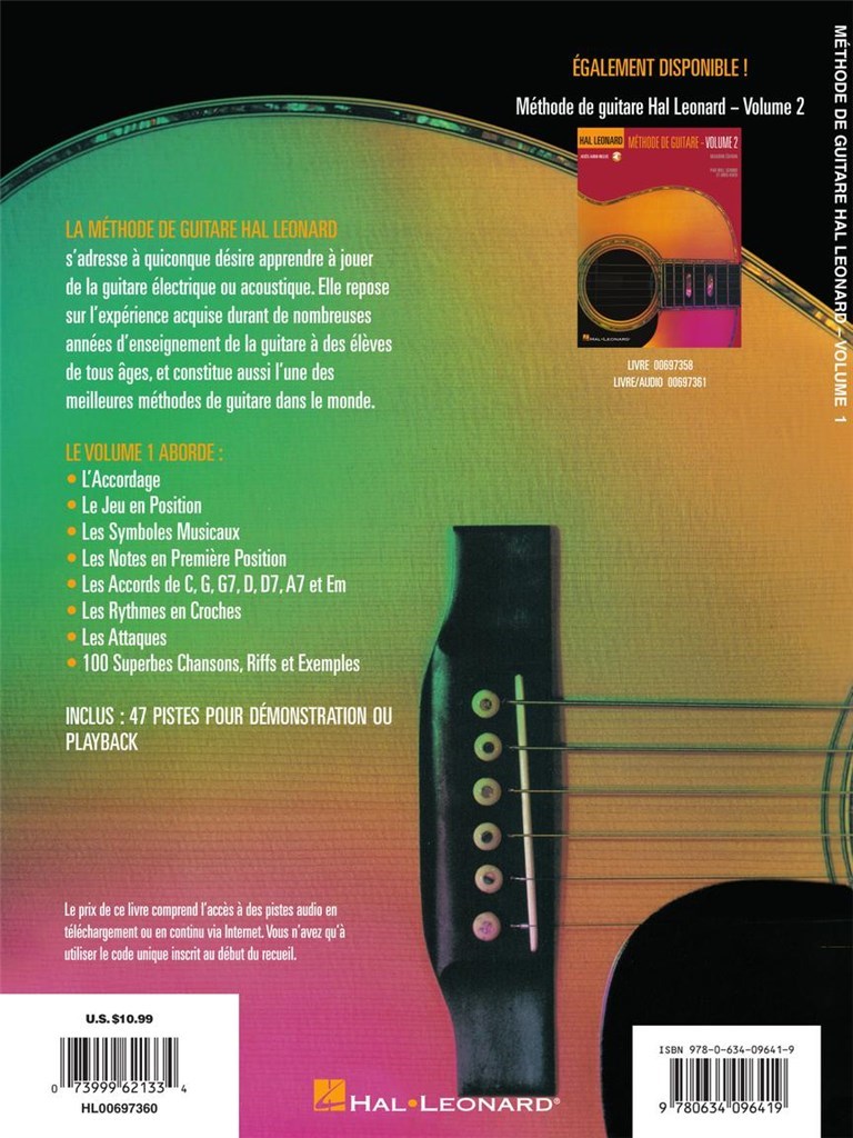 Cette méthode s'adresse à quiconque désire apprendre à jouer de la guitare électrique ou acoustique. Elle repose sur l'expérience acquise durant de nombreuses années d'enseignement de la guitare. Le volume 1 aborde : L'Accordage - Le Jeu en Position - Les Symboles Musicaux - Les Notes en Première Position, Les Accords de C, G, G7, D, D7, A7 et Em - Les Rythmes en Croches - Les Attaques et 100 Chansons, Riffs et Exemples. Le CD audio comprend 47 morceaux de démonstration ou playback.