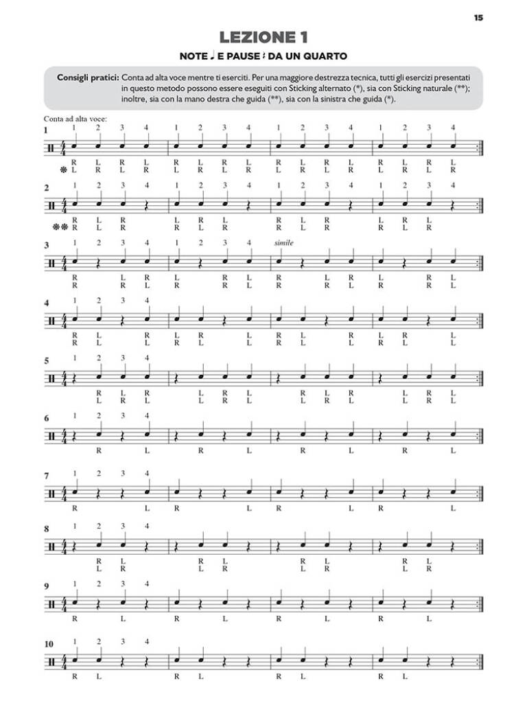 Un metodo pensato per i percussionisti, principianti di livello intermedio, che vogliano cimentarsi con lo studio del tamburo rullante. Contiene 40 lezioni pensate sia per lo studio collettivo che individuale. Tra gli argomenti trattati: ampliamento del vocabolario ritmico - esercizi con diverso metro - esercizi con le tecniche delrullo e dei rudimenti - approfondimenti suldrumming tradizionale e attuale - applicazione dei due metodi base di sticking,alternato e naturale.