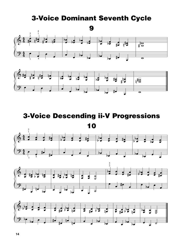 70 exercises for the beginning to professional pianist. Includes material on comping, major and minor progressions, chromatic exercises, diatonic exercises, altered chords, progressively complex voicings, practice in all twelve keys, and circle of fifths.