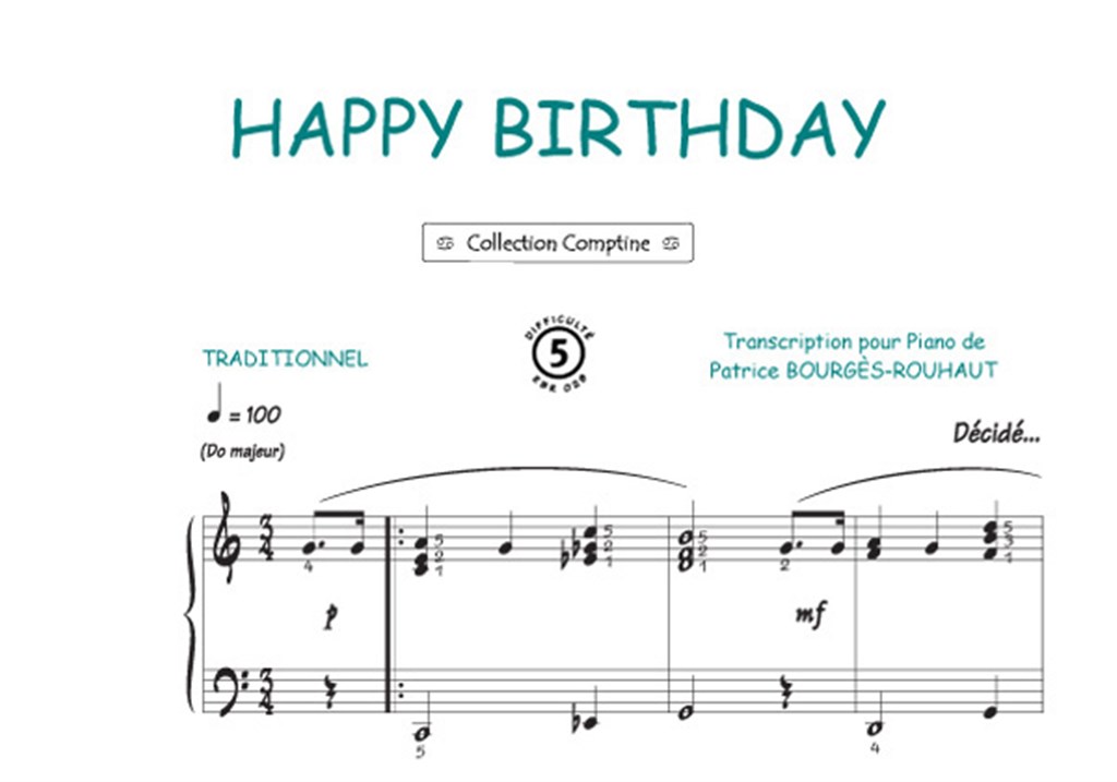 Happy birthday - (Collection Comptine) Arrangement Piano - 1 - niveau : Assez facile