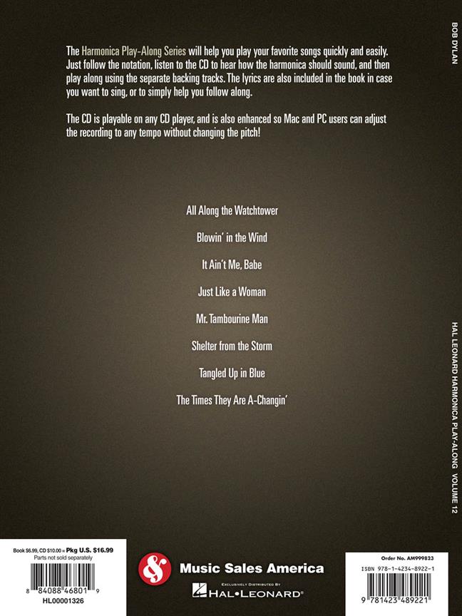 Volume 12 de la Harmonica Play-Along Series vous aidera à jouer vos chansons de Bob Dylan préférés rapidement et facilement.