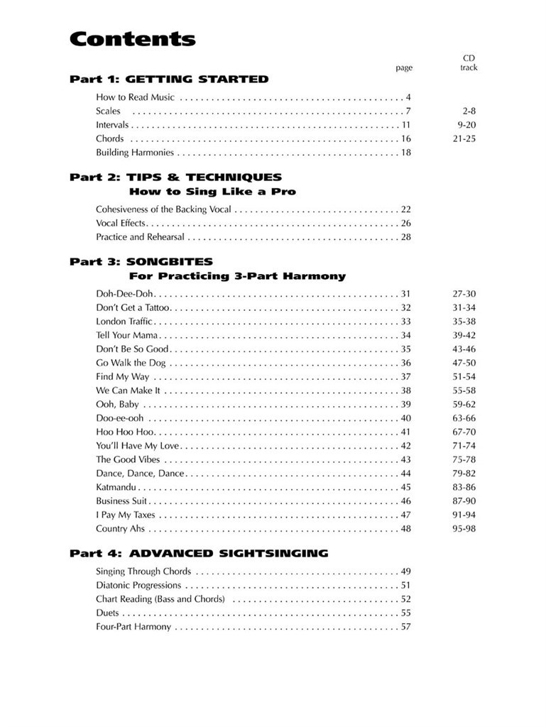 Des choeurs Mike Campbell et Trace Lewis, convient aux chanteurs de tous âges, couvrant la formation de base l'oreil et le chant à la vue, l'harmonie et la théorie à partir des lignes de possède à l'harmonie de quatre partie, et l'étape essentiel et les techniques, toute rassembler sous un format facile d'emploi. Le CD d'accompagnement comprend 99 morceaux de démo entière, qui vous permettent de ' écouter, d'apprendre et harmonies de les de participer en chantant. Ce livre rendra l'apprentissage du chant d'harmonies une réalité même pour les choriste les moins expérimenté.