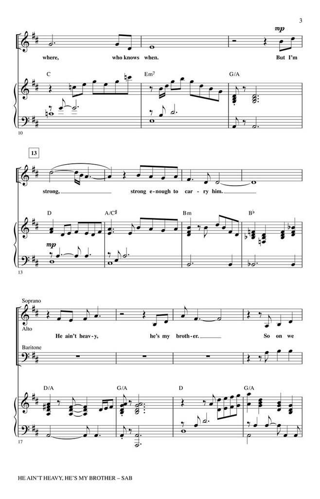 Cet hymne de fraternité, initialement publié par les Hollies, a atteint la première place des classements en 1969, devenant l’un de leurs plus grands succès et l’un des morceaux les plus marquants et durables des années 1960. Cette puissante mise en musique chorale est un excellent atout pour les remises de diplômes et de nombreuses autres occasions de concert. Disponibles séparément : SATB, SAB, SSA, ShowTrax CD. Pièces combinées disponibles en numérique (tpt 1-2, tsx, tbn, syn, gtr, b, dm). Durée : environ 4:10.