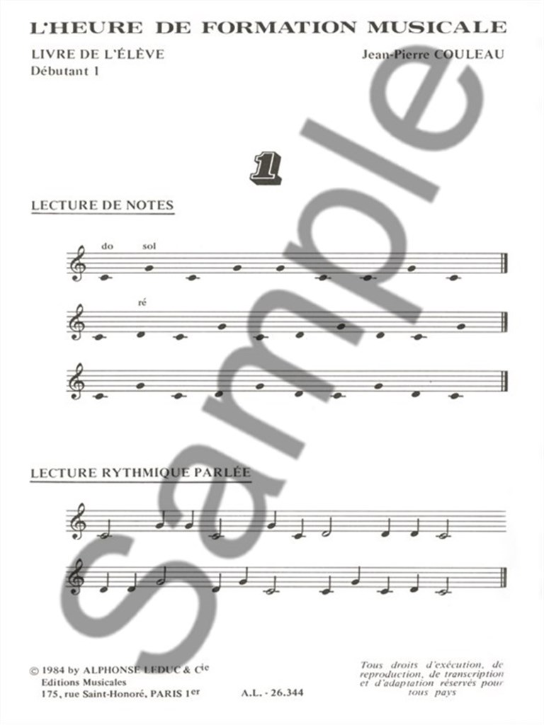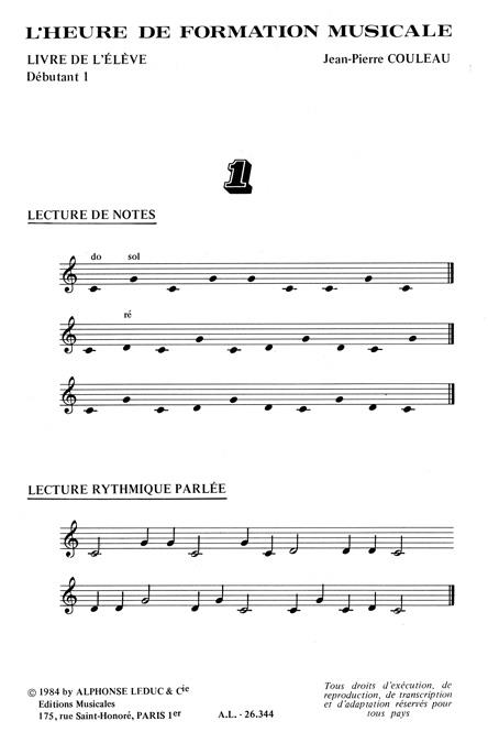 Heure De Formation Musicale Debutant 1 – Livre De L’Eleve COULEAU JEAN-PIERRE