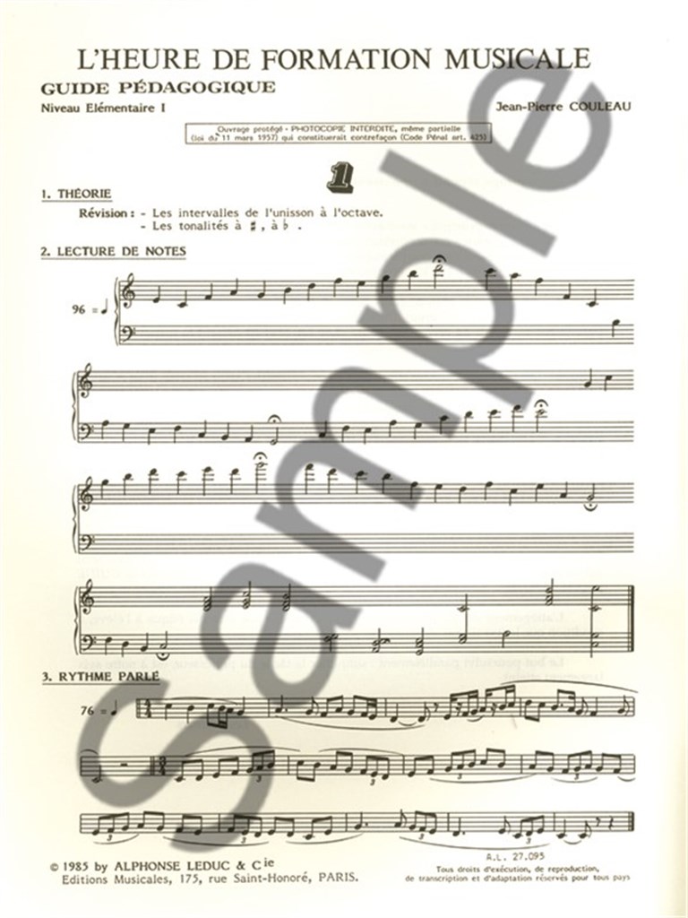 Heure De Formation Musicale Elémentaire 1 – Livre Du Maitre COULEAU JEAN-PIERRE
