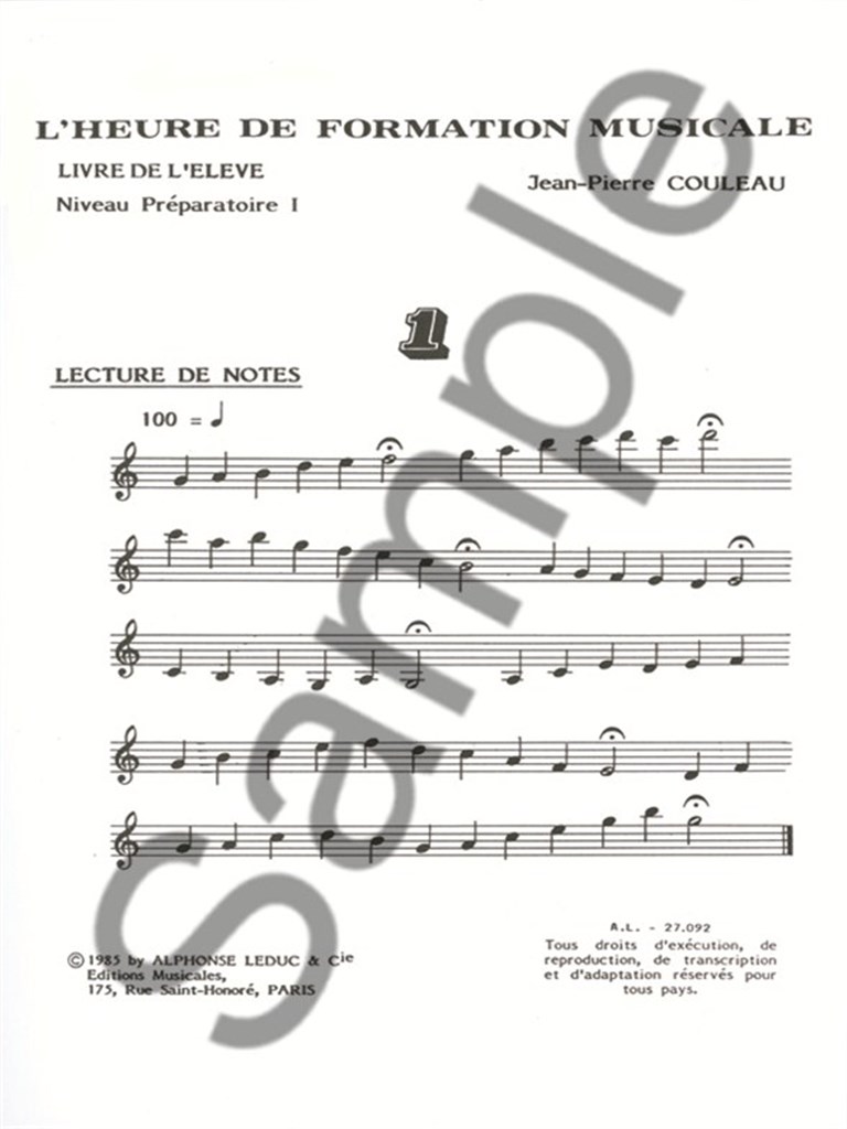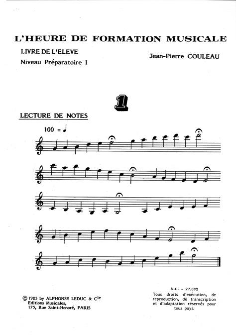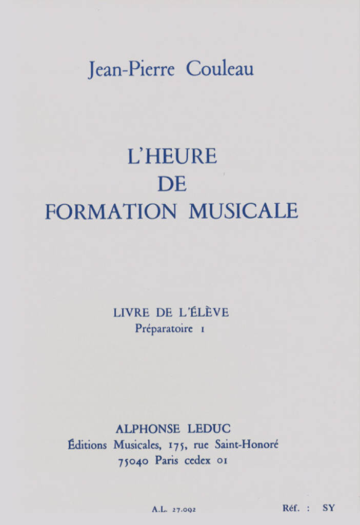 Heure De Formation Musicale Preparatoire 1 – Livre De L’Eleve COULEAU JEAN-PIERRE
