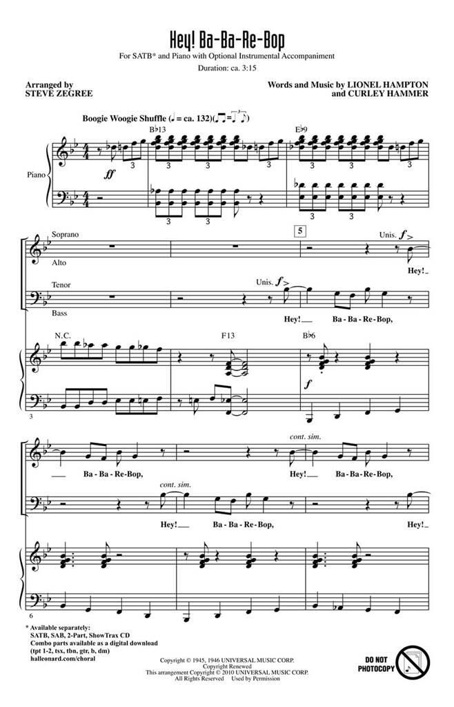 Lionel Hampton a rendu cette chanson célèbre et ce cadre jazz sera un changement de rythme amusant pour les groupes pop et jazz cherchant un ajout léger à leurs concerts. Super dossier solo ! Disponible séparément : SATB, SAB, 2 parties, ShowTrax CD. Pièces combinées disponibles en numérique (tpt 1-2, tsx, tbn, gtr, b, dm). Durée : environ 3:15.