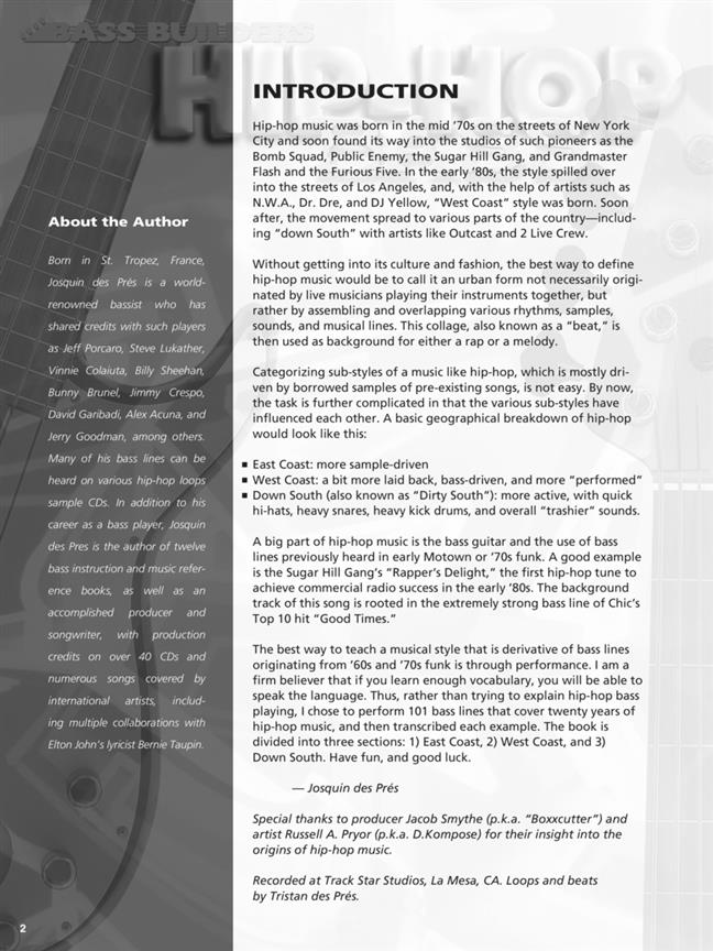 Cet excellent ouvrage au nos constructeurs basse série caractéristiques 101 authentiques hip-hop lignes de basse couvrant 25 ans de musique urbaine et couvrant les styles East Coast, côte ouest et vers le bas du Sud. Le CD d'accompagnement comprend 98 pistes plein-démo - interprétées par le célèbre bassiste et auteur Josquin des Prés - et le livre comprend onglet et notation standard.