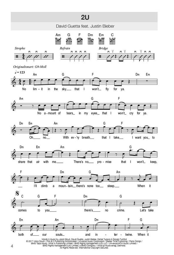 Der zweite Teil des erfolgreichen Hitbooks beinhaltet 100 aktuelle Chartshits wie auch Top-Titel der letzten Jahre. Jeder Song ist zwei Mal notiert - einmal mit Melodielinie und Akkorden und zusätzlich als Text mit Akkorden. Die Arrangements sind mit Formteilen, Angabe der Originaltonart sowie Schlagmustern versehen. So k and ouml - nnen GitarristInnen sich die Songs noch leichter erarbeiten. Wie auch das Hitbook-Update ist die Ausgabe im gr and ouml - and szlig - eren Format und mit benutzerfreundlicher Spiralbindung. Als Novum ist im Buch ein Streaming-Link zu den Originaltiteln enthalten.