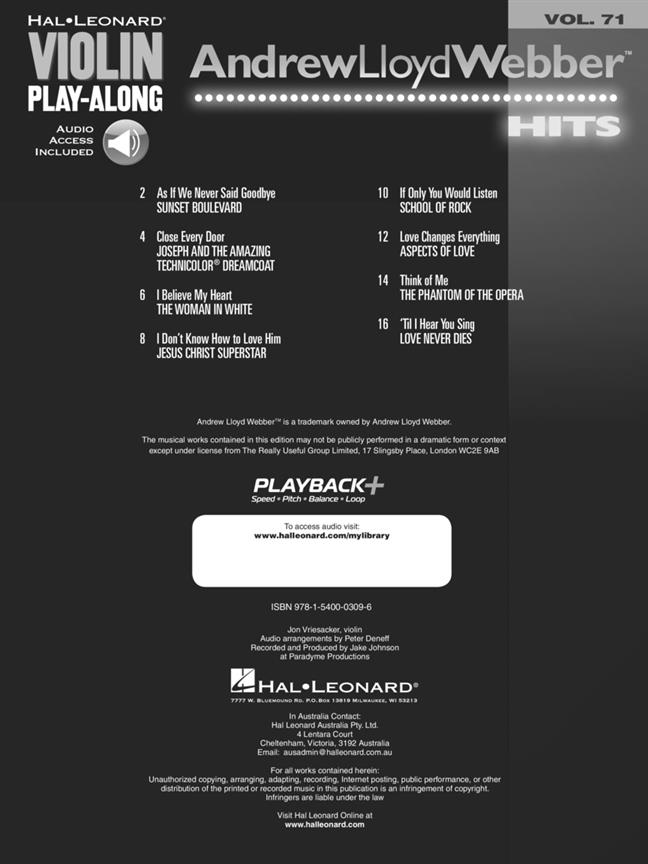 Hits – Violin Play-Along Vol.71 LLOYD WEBBER ANDREW