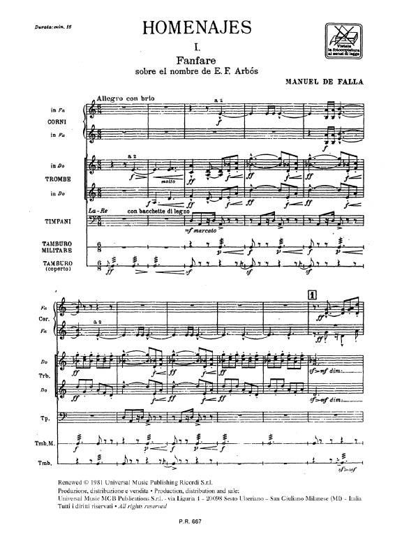 Homenajes (4) Suite Per Orchestra FALLA MANUEL DE
