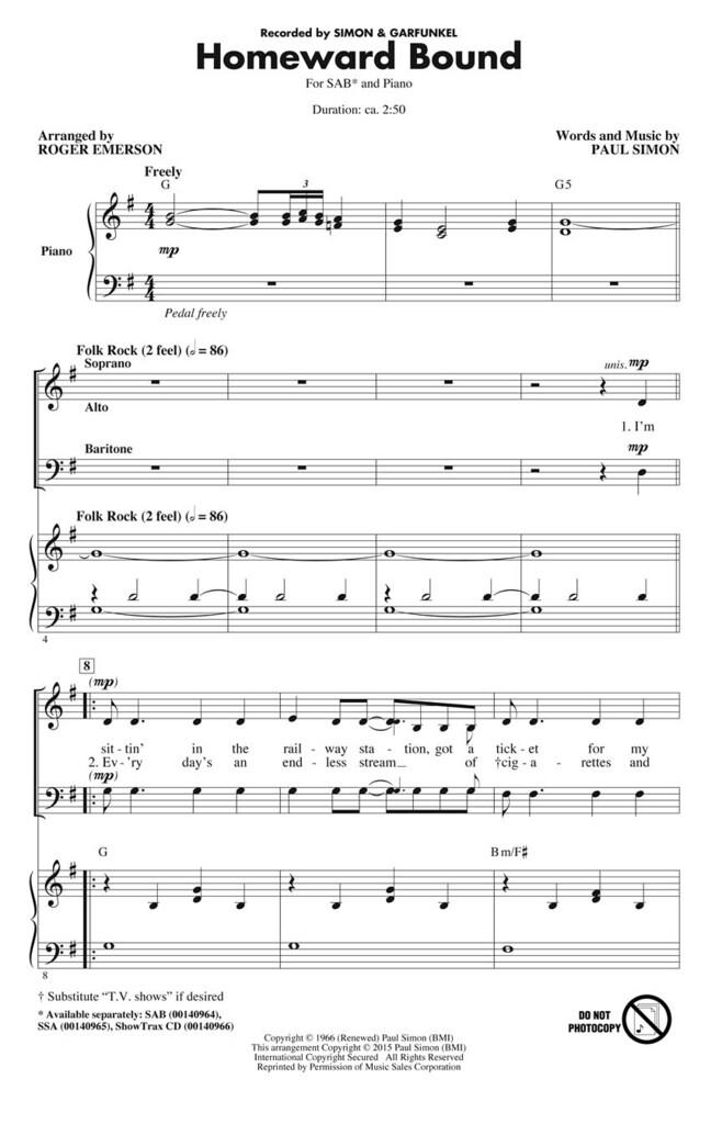 Cette chanson emblématique de Paul Simon tirée de l’album Parsley, Sage, Rosemary and Thyme de 1966 de Simon & Garfunkel a également été un single à succès la même année. Avec des paroles qui expriment la solitude, le désir de la maison et des harmonies appréciées et familières, les chœurs prendront plaisir à recréer le son d’une époque antérieure.