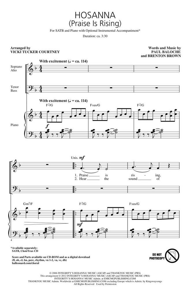 Hosanna (Praise Is Rising) BROWN BRENTON / BALOCHE PAUL