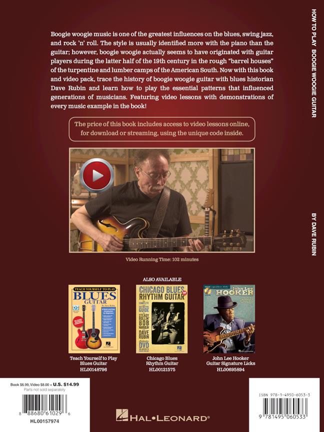 Boogie woogie music is one of the greatest influences on the blues, swing jazz and rock 'n' roll. The style is usually identified more with the piano than the guitar, however, boogie woogie actually seems to have originated with guitar players during the latter half of the 19th century in the rough barrel houses of the turpentine and lumber camps of the American South. Now with this book and video pack, trace the history of boogie woogie guitar with blues historian Dave Rubin and learn how to play the essential patterns that influenced generations of musicians. Features video lessons with demonstrations of every music example in the book! Boogie woogie music is one of the greatest influences on the blues, swing jazz and rock 'n' roll. The style is usually identified more with the piano than the guitar - however, boogie woogie actually seems to have originated with guitar players during the latter half of the 19th century in the rough and ldquo - barrel houses and rdquo - of the turpentine and lumber camps of the American South. Now with this book and video pack, trace the history of boogie woogie guitar with blues historian Dave Rubin and learn how to play the essential patterns that influenced generations of musicians. Features video lessons with demonstrations of every music example in the book!