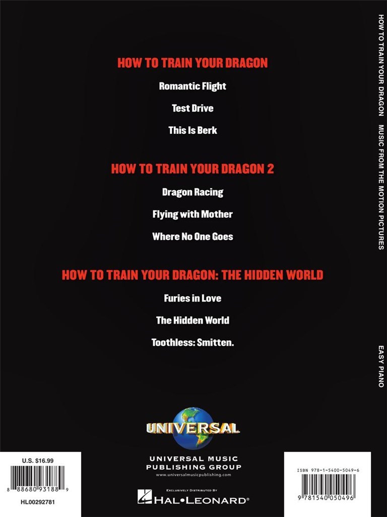 This songbook features easy piano arrangements from all three films in the How to Train Your Dragon franchise featuring music by John Powell. Includes: Dragon Racing · Flying with Mother · Furies in Love · The Hidden World · Romantic Flight · Test Drive · This Is Berk · Toothless: Smitten · Where No One Goes.
