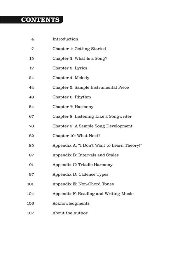 Your first song is the hardest one you will ever write. This book is designed to help you accomplish that goal. Were not going to jot down just any song, but one that you are proud of, one that gives you the confidence and the process required to write your second song, your third song, and on and on. Here you will find the basic musical knowledge you need and a process for putting that knowledge to work. Lets get started. Lets make you into a songwriter! Includes access to audio examples online for download or streaming.