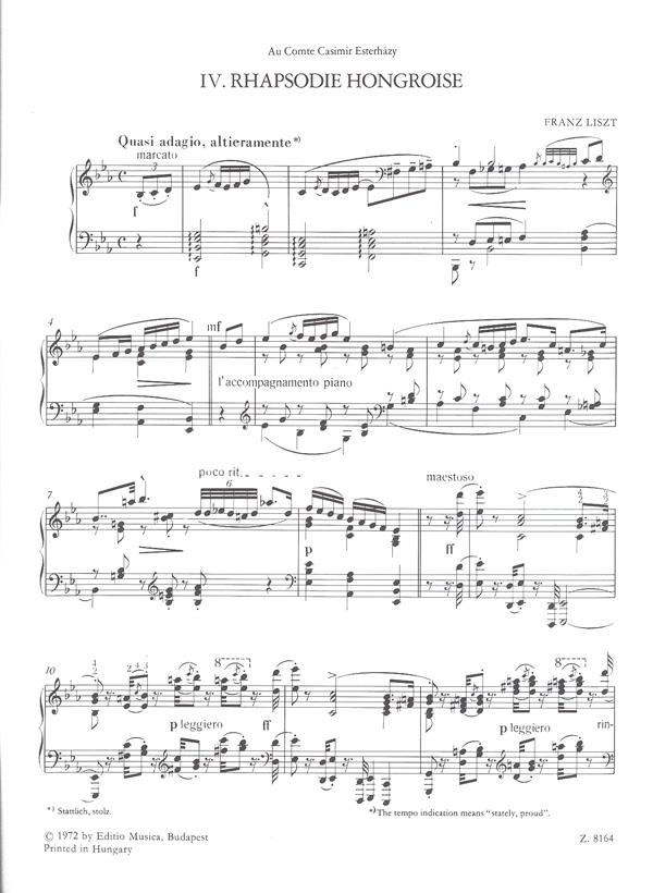 Hungarian Rhapsody N 4 Piano Solo LISZT FRANZ