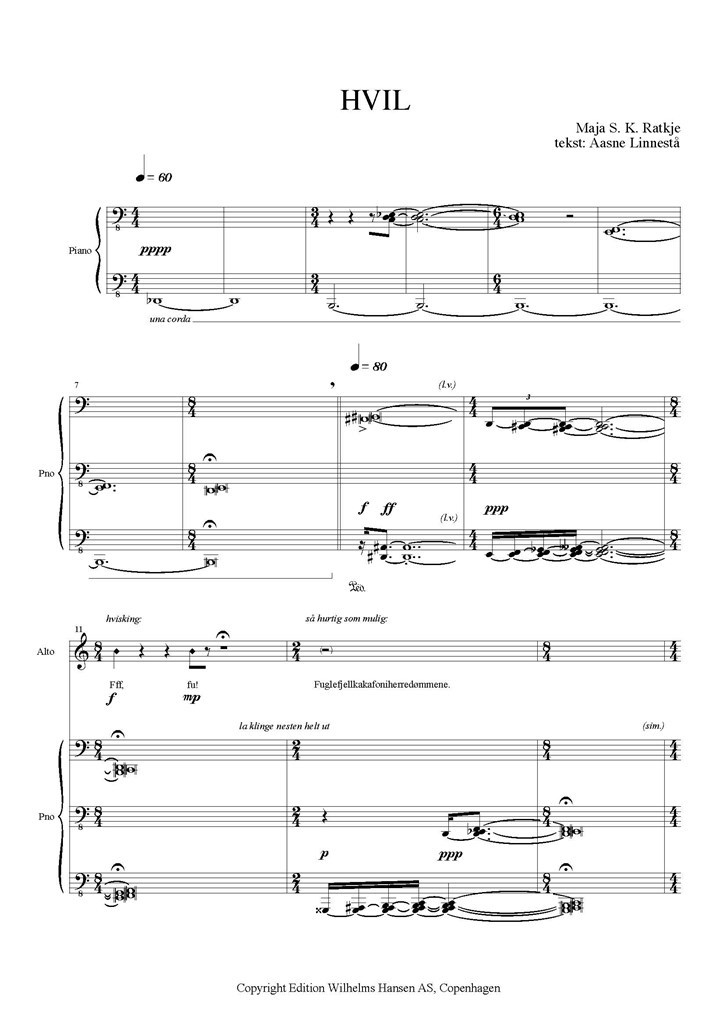 Hvil (Eng.: rest) is an imperative, and a plea: the earth's plea to humankind. This plea consists of words and music which have taken shape at the same time in a close collaboration between composer and the author Aasne Linnestå. 'Hvil' was commissioned by the Nordland Musikkfestuke festival, Bodø, in 2008 and received its premier performance there by Marianne Beate Kielland and Nils Anders Mortensen. The piece is released on the album 'Come Away Death' by Kielland and Sergej Osadchuk (piano) on the Norwegian label 2L, in 2010.Hvil (Eng.: rest) is an imperative, and a plea: the earth's plea to humankind. This plea consists of words and music which have taken shape at the same time in a close collaboration between composer and the author Aasne Linnestå. 'Hvil' was commissioned by the Nordland Musikkfestuke festival, Bodø, in 2008 and received its premier performance there by Marianne Beate Kielland and Nils Anders Mortensen. The piece is released on the album 'Come Away Death' by Kielland and Sergej Osadchuk (piano) on the Norwegian label 2L, in 2010.