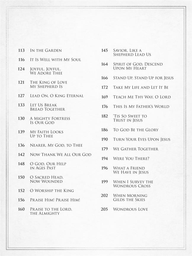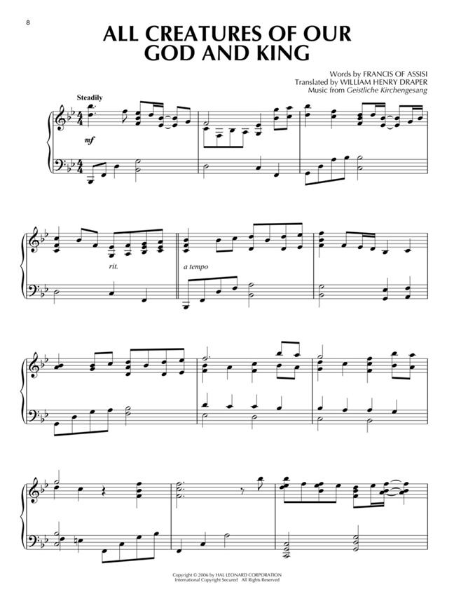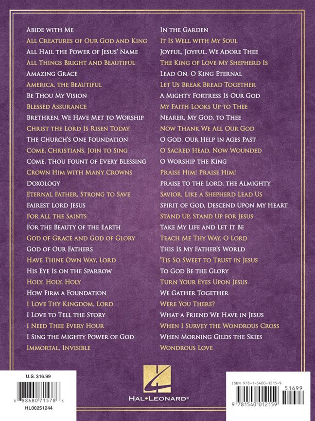 A beautiful collection of 60 hymns arranged for piano solo, including: Abide with Me - Be Thou My Vision - Come, Thou Fount of Every Blessing - Doxology - For the Beauty of the Earth - God of Grace and God of Glory - Holy, Holy, Holy - It Is Well with My Soul - Joyful, Joyful, We Adore Thee - Let Us Break Bread Together - A Mighty Fortress Is Our God - O God, Our Help in Ages Past - Savior, like a Shepherd Lead Us - To God Be the Glory - What a Friend We Have in Jesus - and more.