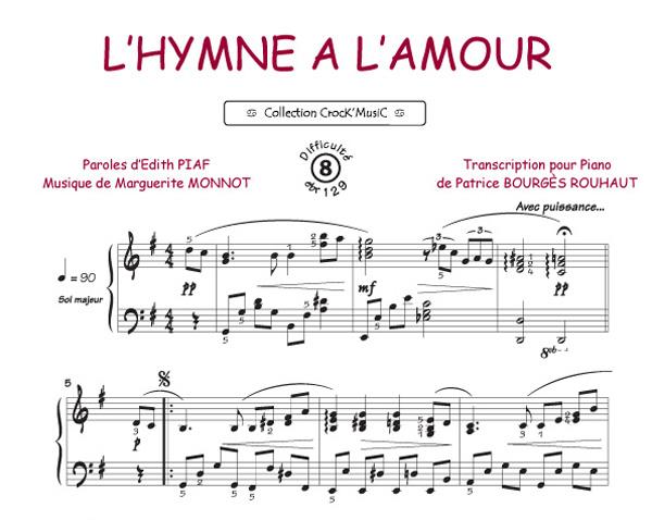 L'hymne à l'amour - Piaf, Edith / Monnot, Marguerite (Collection CrocK'MusiC) Arrangement Piano - 2 + feuillet pour paroles - niveau : Moyen