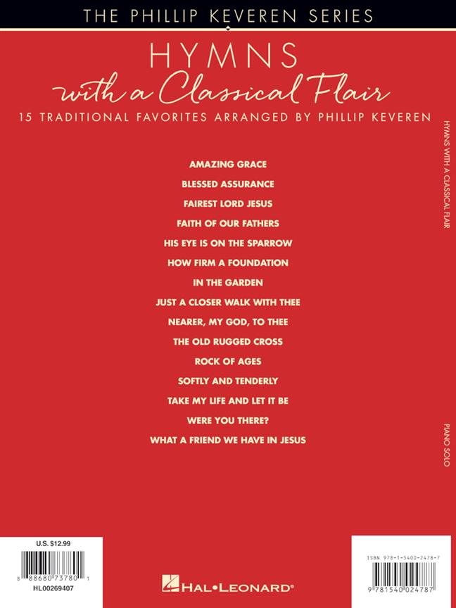 Using classical compositional devices, Phillip Keveren has developed these 15 enduring hymns into character pieces for piano solo.