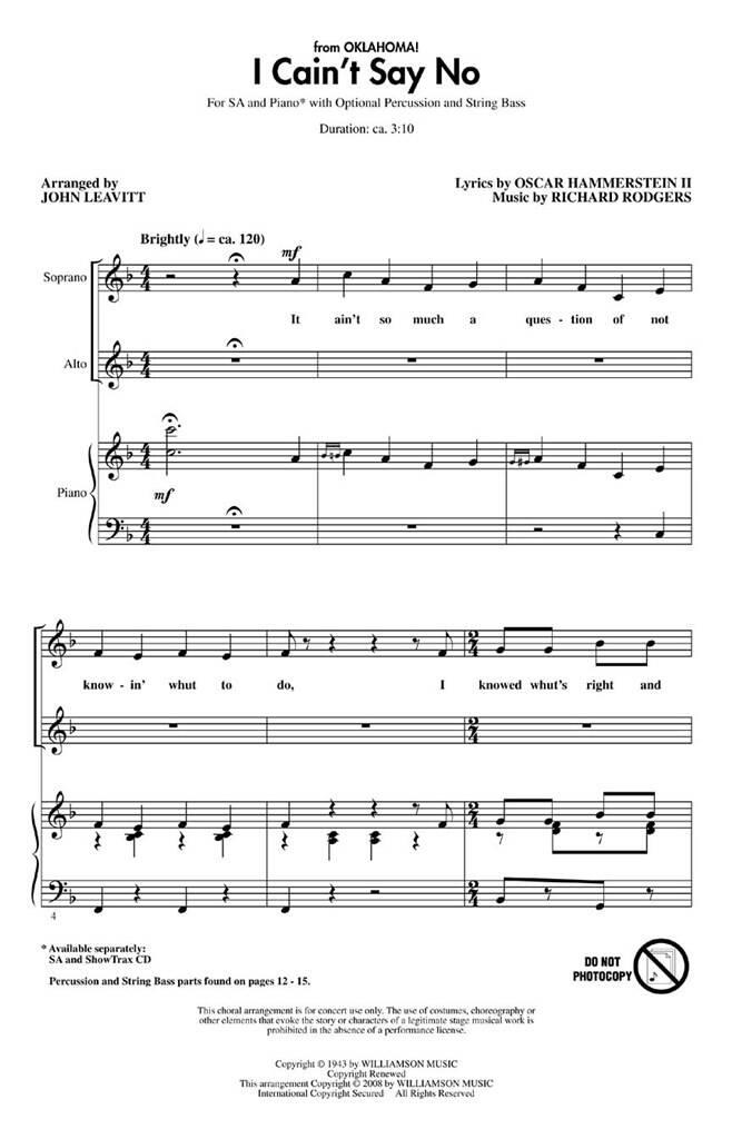 De la comédie musicale Oklahoma de Rodgers et Hammerstein, dans ce classique de Broadway, Ado Annie déplore son incapacité à refuser un prétendant. Un choix de nouveauté parfait pour les groupes SSA ! Comprend des parties de percussions et de contrebasse. Disponible séparément : SSA, CD ShowTrax. Durée : environ 3:10.