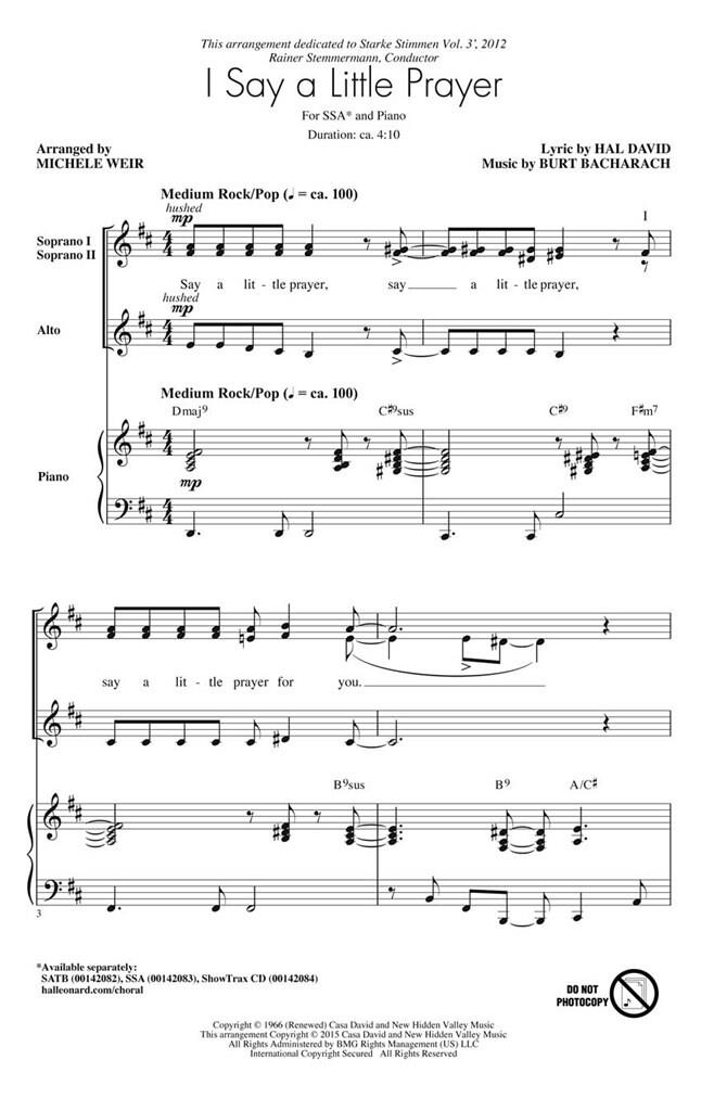 Michele Weir a offert à ce tube pop de 1967 de Dionne Warwick un traitement neuf, idéal pour le jazz, la pop et les chœurs de concert ! Solo et groupe, des phrases vocales en cascade et une partie de clavier contemporaine ajoutent de l’intérêt !