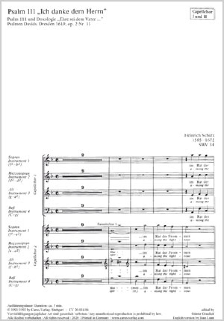 Ich Danke Dem Herrn Von Ganzem Herzen SCHUTZ HEINRICH