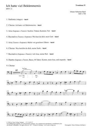 Ich Hatte Viel Bekümmernis (1. Fassung) BACH JOHANN SEBASTIAN