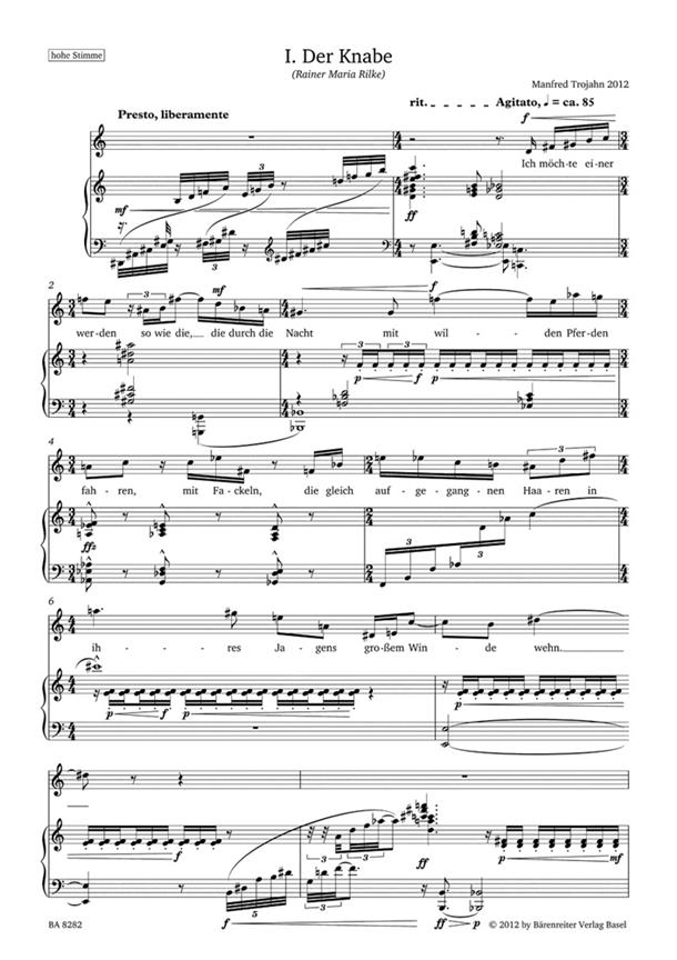 Composer / Author: Trojahn, Manfred I. Der Knabe Librettist: Rilke, Rainer Maria Composer / Author: Trojahn, Manfred II. Der arme Kaspar Librettist: Klabund Composer / Author: Trojahn, Manfred III. Gaspard Hauser chante Librettist: Verlaine, Paul Composer / Author: Trojahn, Manfred IV. Kaspar Hauser Lied Librettist: Trakl, Georg