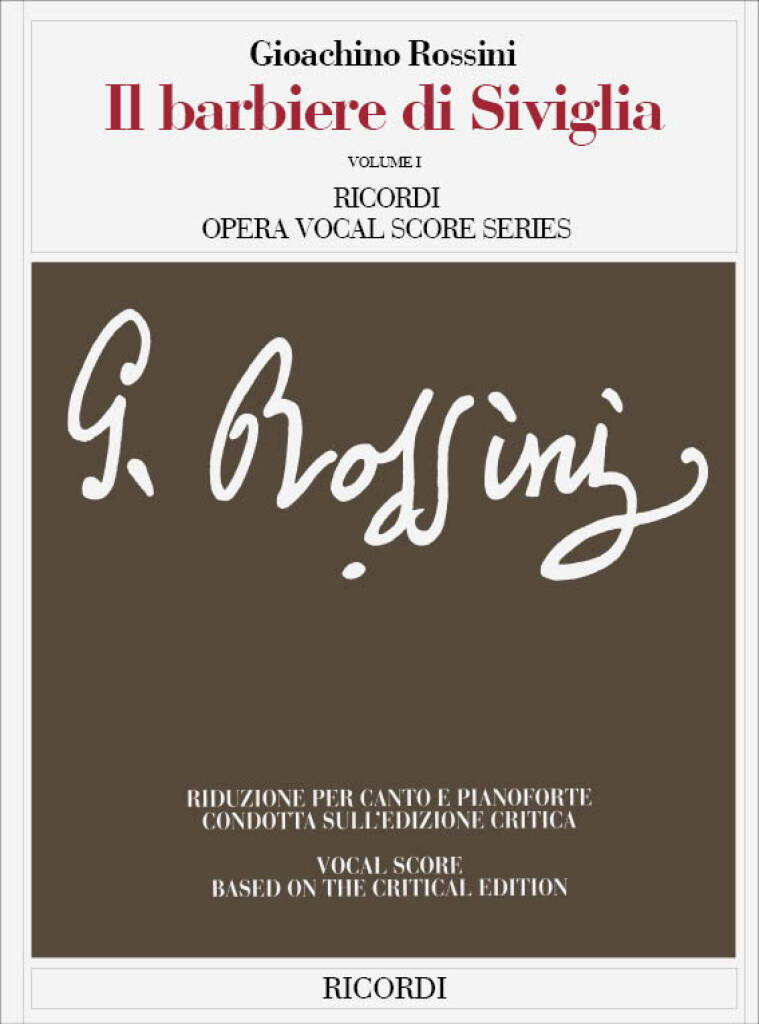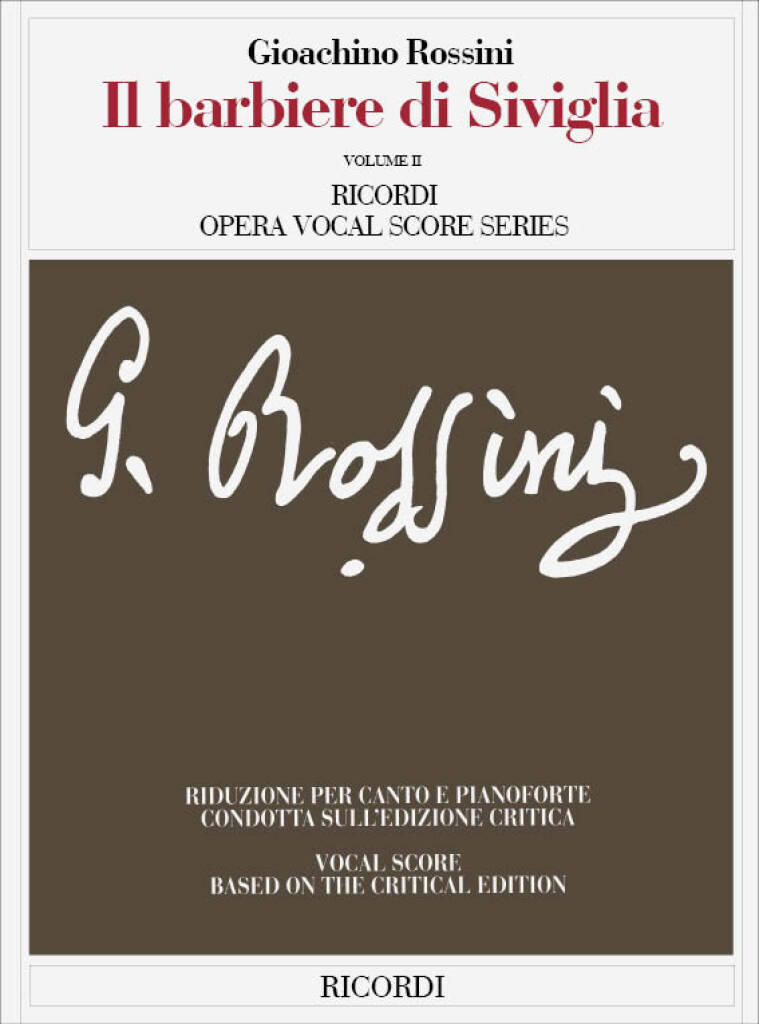 The new reduction of Il barbiere di Siviglia is based on the critical edition of the full score by Alberto Zedda that, republished in 2009, appeared in turn as a fully revised edition - in the light of new sources and updated philological criteria - of the historic and pioneering critical edition of 1969. The 1969 Barbiere di Siviglia was based on the autograph and on manuscript and printed sources still considered primary: the copies from Giovanni Battista Cencetti (now kept at the New York Public Library, at the Bibliomediateca of Santa Cecilia Academy in Rome, at the Biblioteca Palatina in Parma and at the Bibliothèque nationale de France in Paris), the copies from Naples, Florence, the main score and vocal scores of the time, the fi rst printed libretto, many manuscript copies of Aureliano in Palmira, work in which Zedda recognized the source of the Symphony of Il Barbiere di Siviglia. To these in 2009 were added all the materials found and transcribed by Zedda after the publication of the volume of 1969. In the Appendices of this edition are published for the fi rst time in vocal score all the new materials added between 1969 and 2009, among them: the aria added for Rosina "Ah se è ver” (Appendix II), an alternative aria for Rosina for the lesson scene "La mia pace, la mia calma” (Appendix III), an alternative aria for Bartolo "Manca un foglio” (Appendix IV) and the vocal autograph variants for NN. 5, 7, 16 (Appendix I). In addition to the musical texts there are - both in Italian and in English - an historical Introduction (in the first volume) and a Critical Commentary to the musical text (in the second volume).