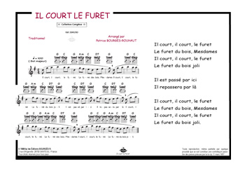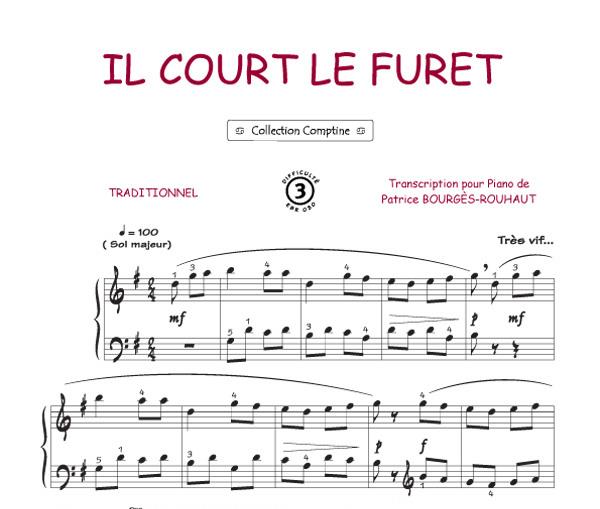 Il court le furet - (Collection Comptine) Arrangement Piano - 1+ feuillet pour paroles - niveau : Facile