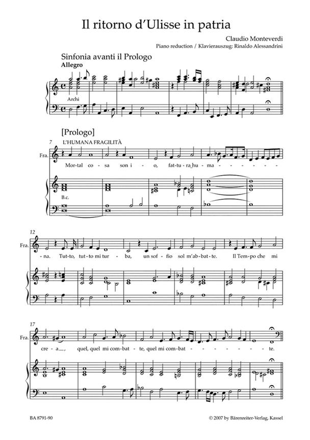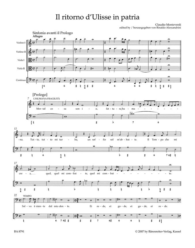 Il Ritorno D’Ulisse In Patria. Tragedia Di Lieto Fine In Un Prologo E Tre Atti MONTEVERDI CLAUDIO