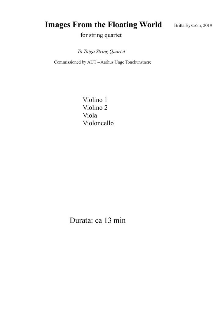 Dedicated to the Taïga String Quartet and commissioned by AUT (Aarhus Unge Tonekunstnere), Parts available: WH33246A Dedicated to the Taïga String Quartet and commissioned by AUT (Aarhus Unge Tonekunstnere), Parts available: WH33246A