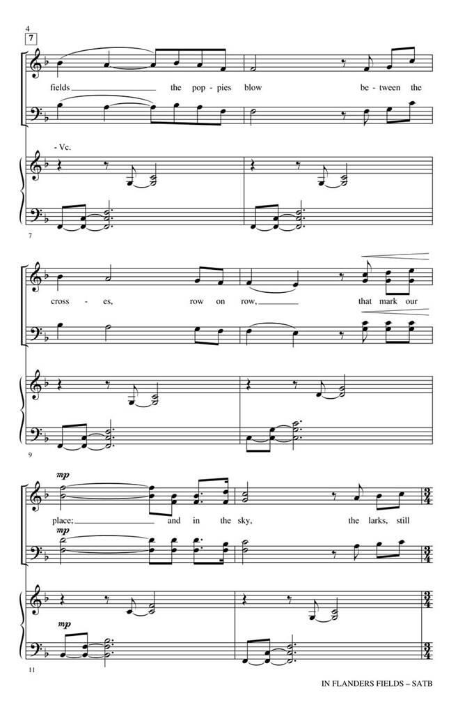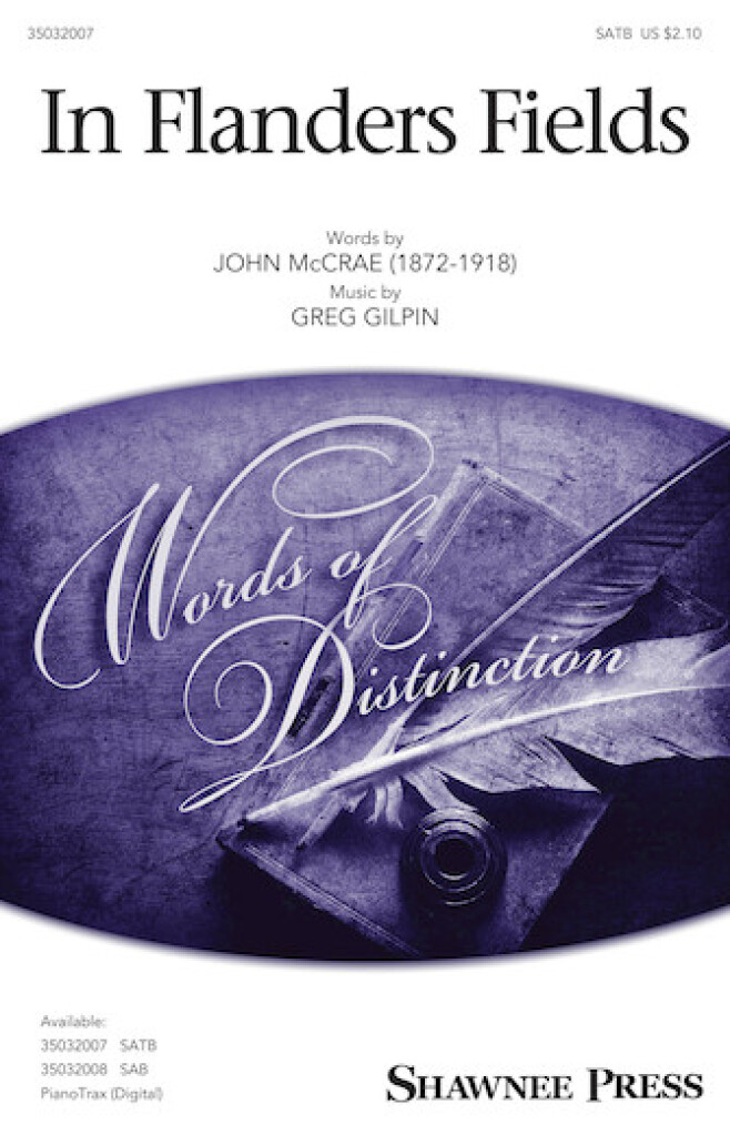 L’un des poèmes les plus connus et souvent cités de la Première Guerre mondiale, la mise en musique de ce texte par Greg Gilpin est d’une solennité exquise, d’un calme et d’une émotion émotionnelle. L’interprétation musicale est remplie de riches structures harmoniques soutenant un motif mélodique envoûtant, créant une belle sélection pour commémorer les anciens combattants, tant au pays qu’à l’étranger.