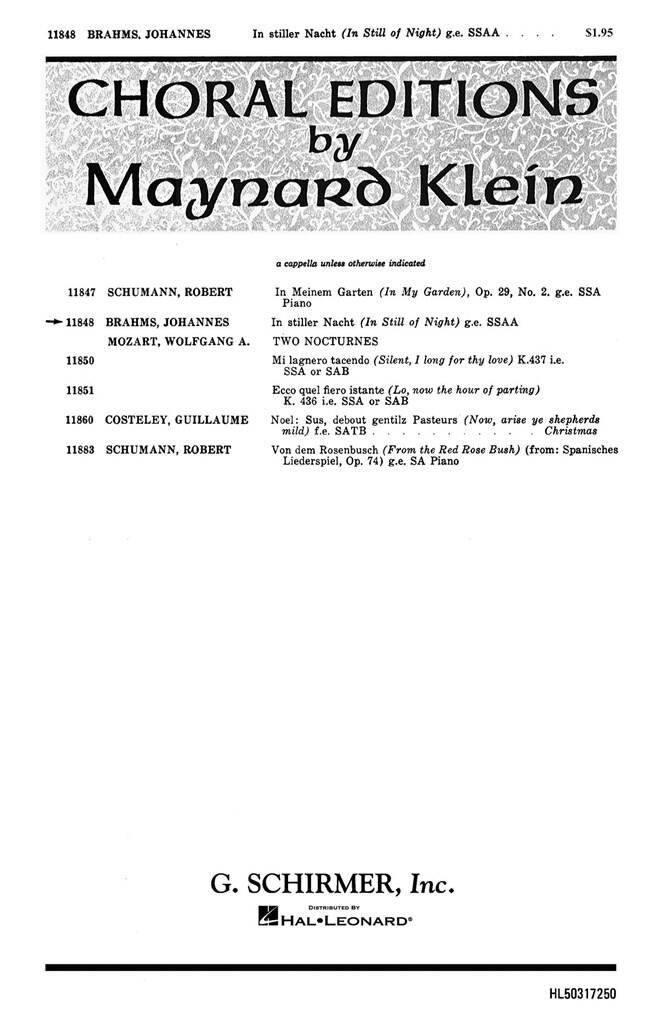 In Stiller Nacht In Still Of Night A Cappella BRAHMS JOHANNES
