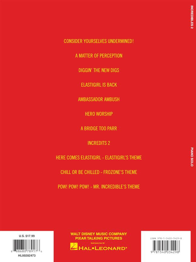 11 songs penned by Michael Giacchino for the motion picture soundtrack to this Disney sequel to the highly popular animated film, The Incredibles. Includes 8 pages of full color artwork from the film!