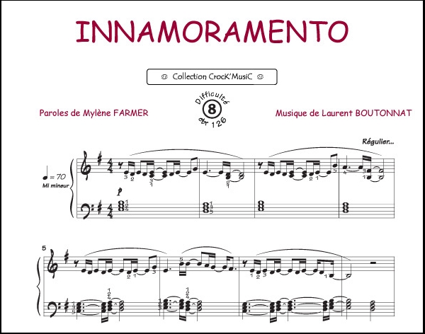 Innamoramento - Farmer, Mylène / Boutonnat, Laurent (Collection CrocK'MusiC) Arrangement Piano - 2 + feuillet pour paroles - niveau : Moyen