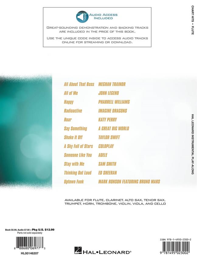 Une douzaine de tubes contemporains brûlants sont inclus dans cette collection, parfaite pour les instrumentistes en herbe. Les succès instrumentaux Play-Along sont livrés avec un accès en ligne aux pistes audio démonstratives à télécharger ou en streaming, vous aidant à comprendre comment les chansons doivent sonner et vous permettant de jouer en même temps.