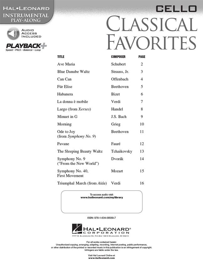 Instrumental Play Along Classical Favorites Cello Cd