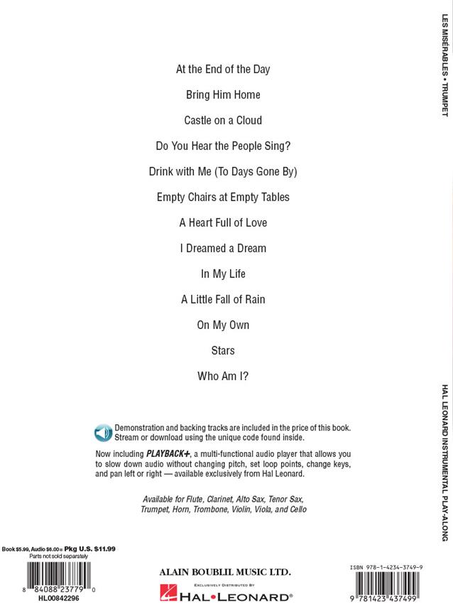 Instrumental Play Along Les Miserables BOUBLIL ALAIN / SCHOENBERG CLAUDE-MICHEL