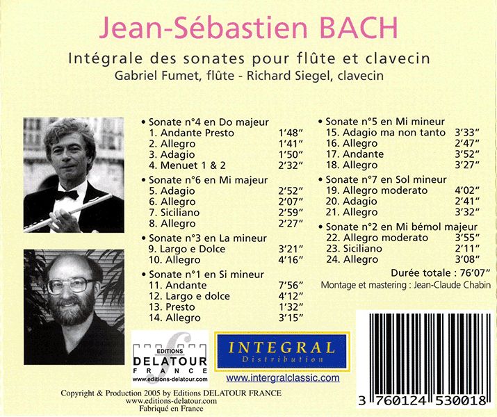 Intégrale Des Sonates Pour Flûte Et Clavecin – G. Fumet/R. Siegel BACH JOHANN SEBASTIAN