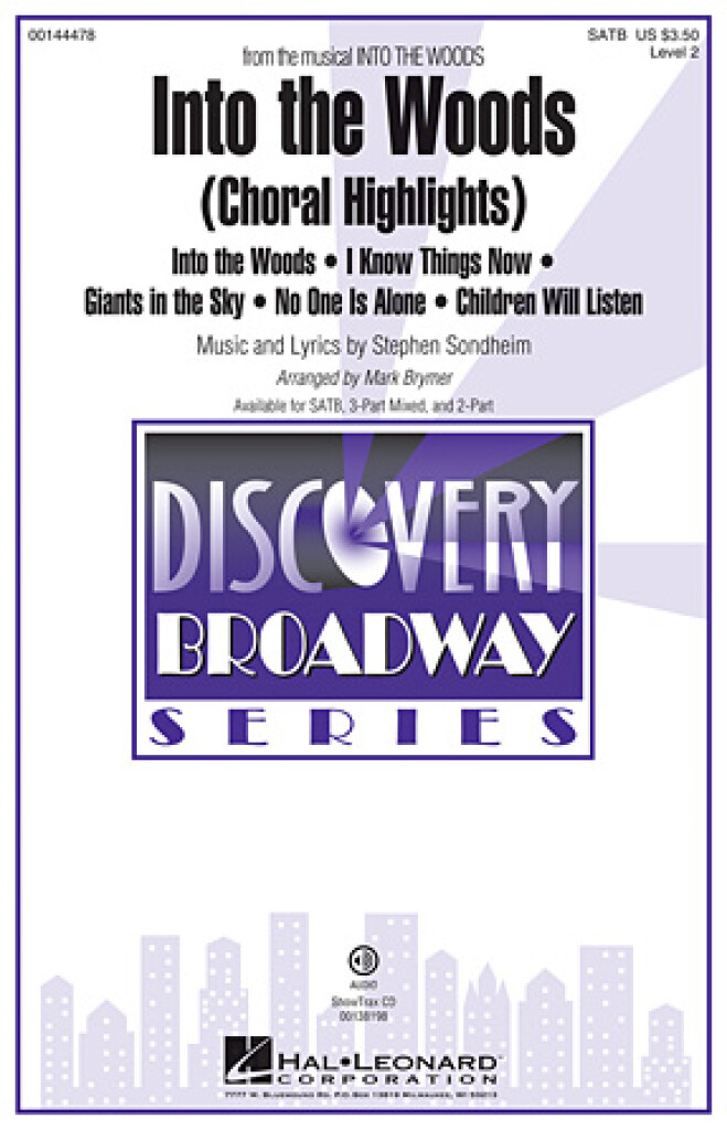 Into the Woods est désormais disponible pour tous les niveaux avec cet arrangement choral Discovery ! Vos chœurs apprécieront ce medley accessible des chansons les plus mémorables de Sondheim issues de la comédie musicale primée, dont Into the Woods, I Know Things Now, Giants in the Sky, No One Is Alone et Children Will Listen.