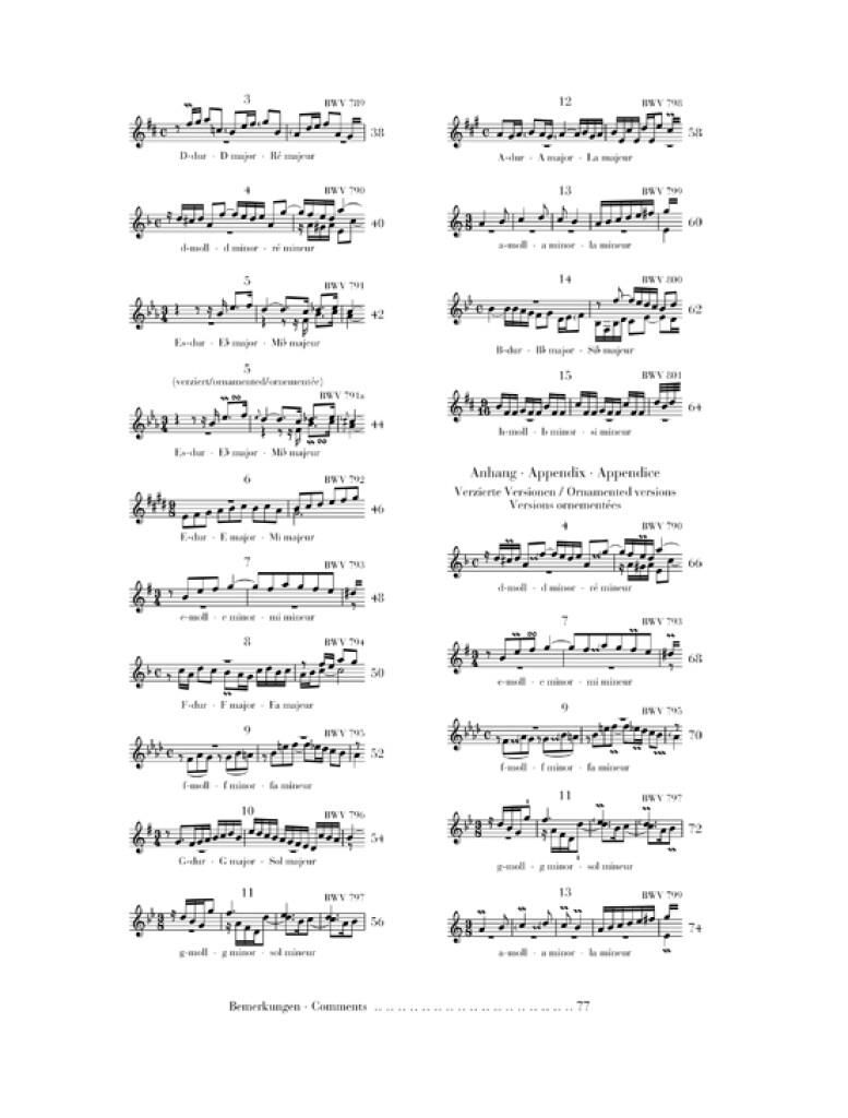 Les Inventions et Sinfonias de Bach sont à juste titre considérées comme indispensables à tout pianiste. Dans sa célèbre préface à la collection, Bach lui-même l’a qualifiée d'« Instruction » qui enseigne aux étudiants et aux amateurs de clavier à « traiter correctement » deux et trois voix, à « atteindre un style de chant » et à « acquérir un fort avant-goût de la composition ». À cette fin, Bach a créé une musique d’une beauté intemporelle qui n’a rien perdu de sa pertinence pour nous près de 300 ans après sa création. Nous présentons maintenant une nouvelle édition de cette collection classique, qui s’appuie sur toutes les sources connues et offre le meilleur en termes d'« instruction », notamment en ce qui concerne les variantes d’embellissement transmises. Le nouveau Bach – idéal pour les pianistes de tous âges ! Les Inventions et Sinfonias de Johann Sebastian Bach sont à juste titre considérées comme indispensables à tout pianiste. Dans sa célèbre préface à la collection, Bach lui-même l’a qualifiée d'« Instruction » qui enseigne aux étudiants et aux amateurs de clavier à « traiter correctement » deux et trois voix, à « atteindre un style de chant » et à « acquérir un fort avant-goût de la composition ». À cette fin, Bach a créé une musique d’une beauté intemporelle qui n’a rien perdu de sa pertinence pour nous près de 300 ans après sa création. Cette édition de la collection classique s’appuie sur toutes les sources connues et offre le meilleur de l'« instruction », notamment en ce qui concerne les variantes d’embellissement transmises. Ce volume s’adresse aux pianistes de tous âges.