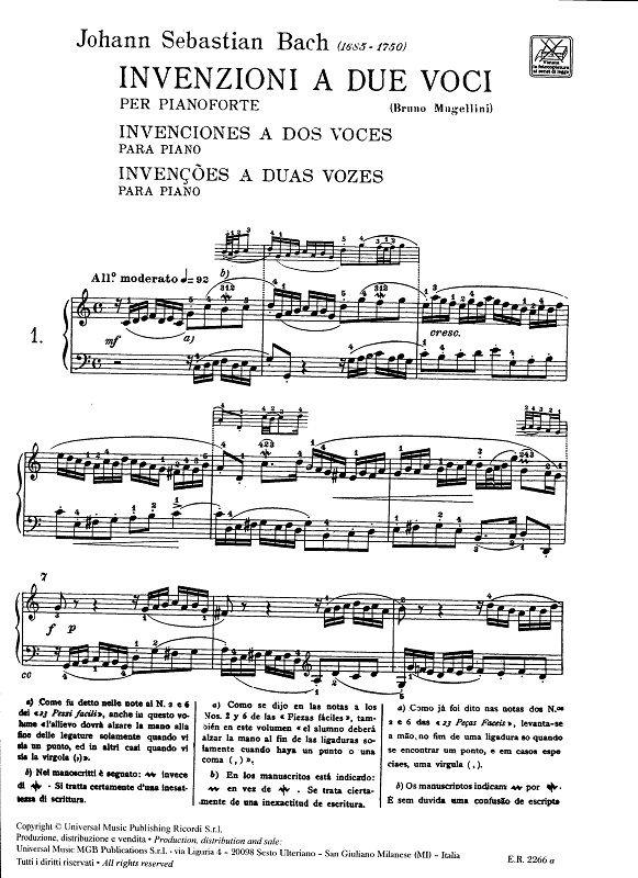 Invenzioni A 2 Voci Annotata (Mugellini) Per Pianoforte BACH JOHANN SEBASTIAN